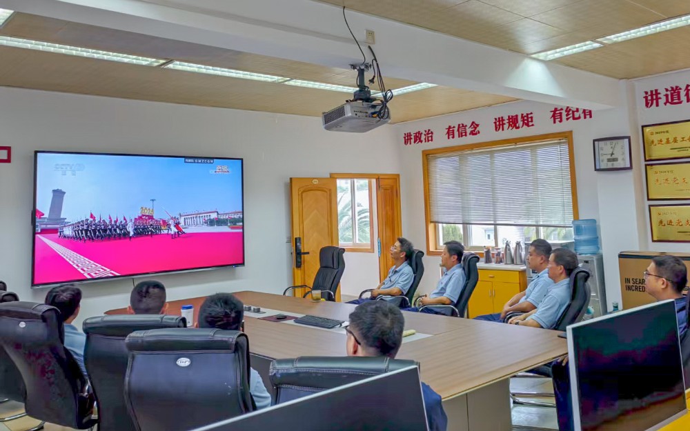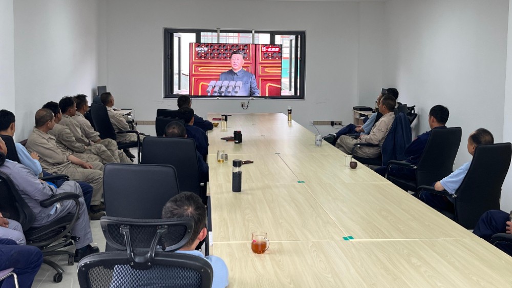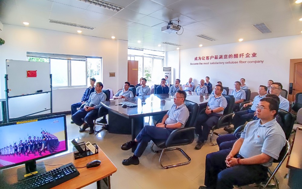 本次活動還特邀公司外方高管共同觀看。熱動、絲束生產(chǎn)、維修三個黨支部在所屬區(qū)域會議室集中觀看。