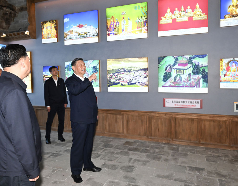6月18日至19日,中共中央總書記、國家主席、中央軍委主席習(xí)近平在青??疾?。這是18日下午,習(xí)近平在位于西寧市城中區(qū)的宏覺寺考察。 新華社記者 翟健嵐 攝