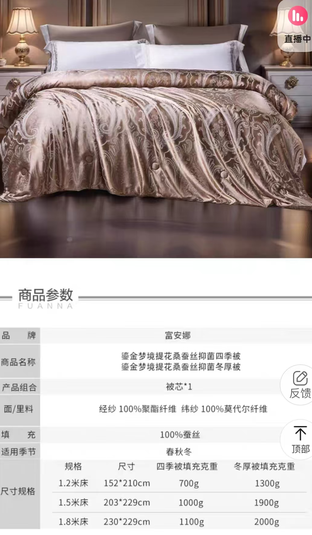 2.1采購范圍:采購滿足(技術(shù)文件)要求的 富安娜 鎏金夢(mèng)境提花桑蠶絲抑菌四季被(230*229cm) 9SET